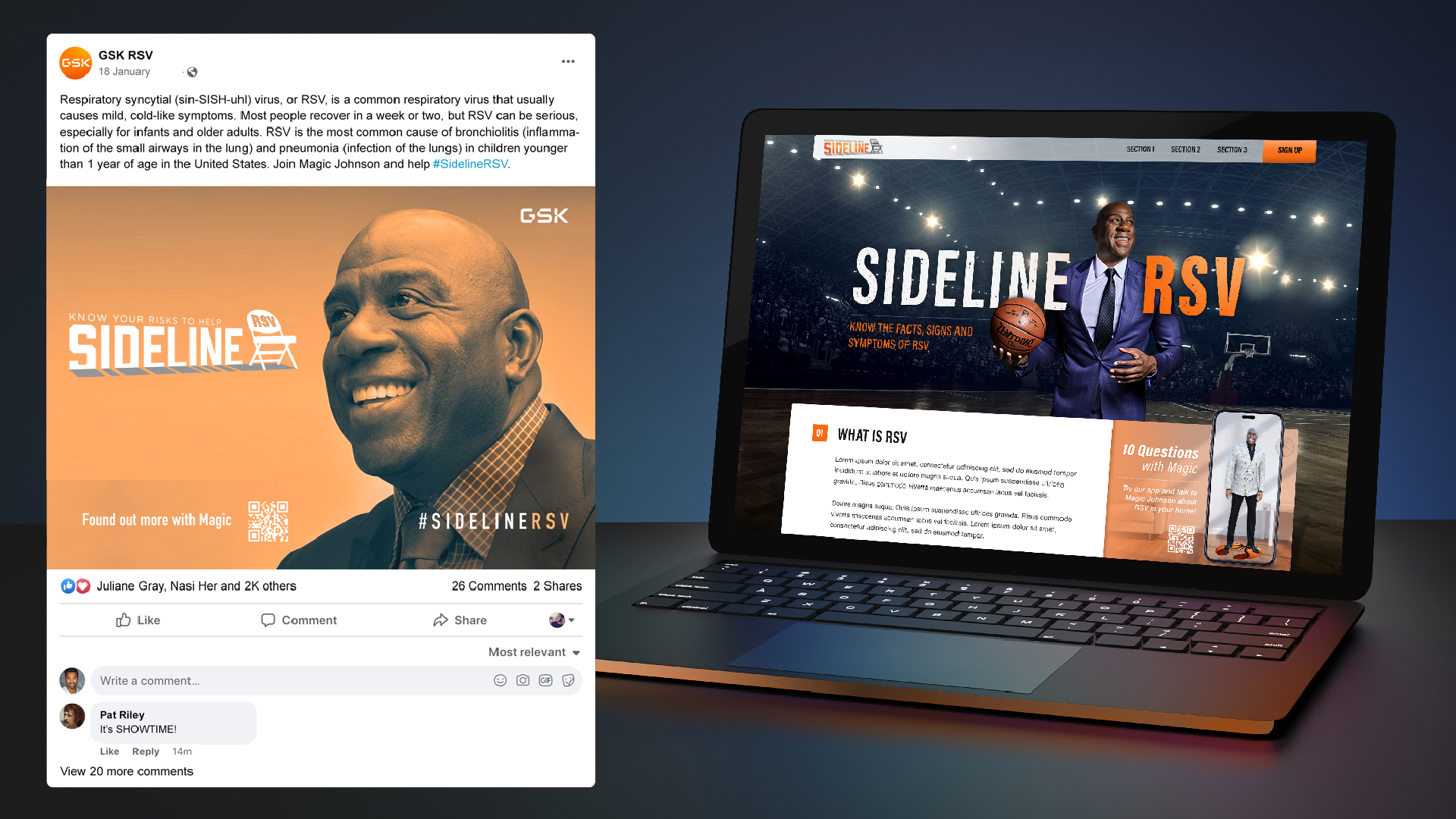 Amid widespread virus and vaccine fatigue, GSK needed a fresh way to raise awareness of RSV’s risks. We launched “Sideline RSV,” a national campaign featuring Magic Johnson to educate and motivate vulnerable communities.