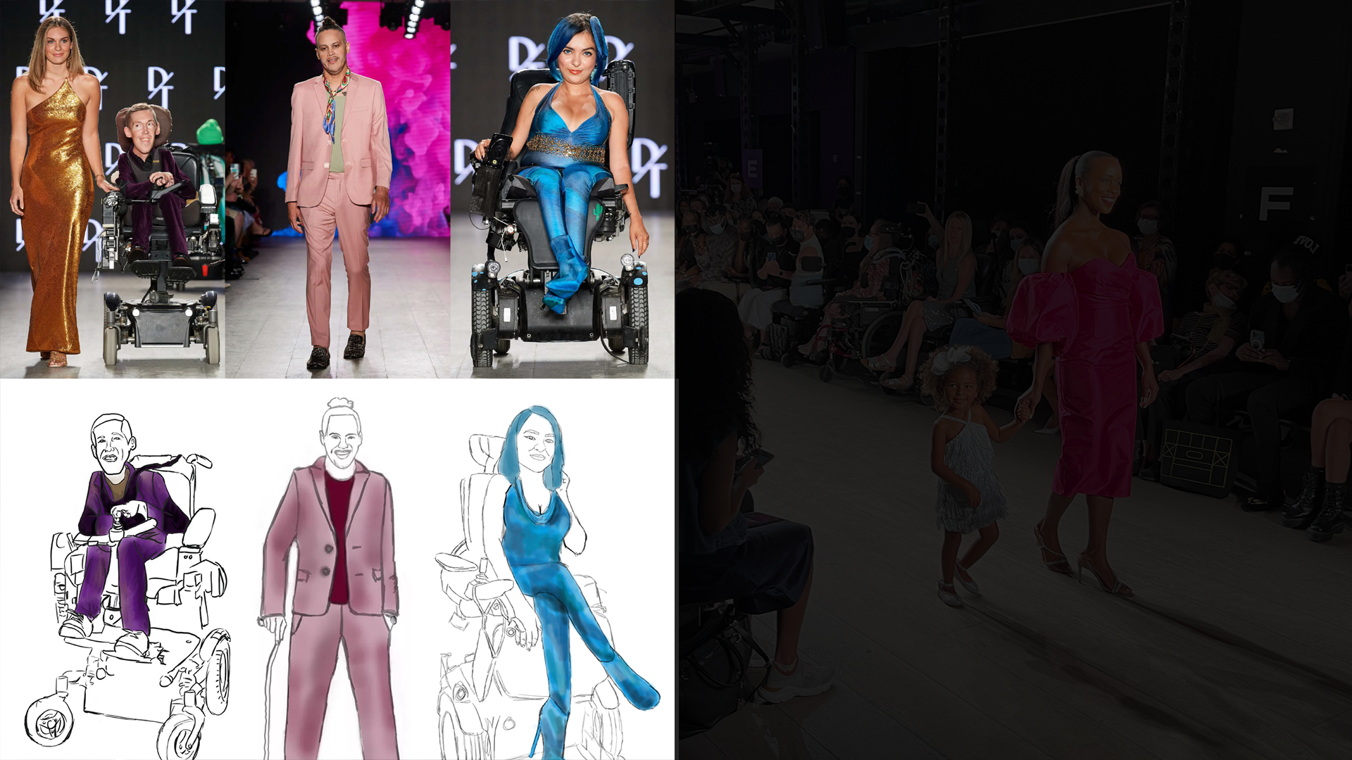 The result was Double Take, a fashion show showcasing adaptive looks created by SMA influencers in collaboration with Open Style Lab. Designs featured thoughtful innovations like hidden magnets, seated-fit tailoring, capes, and stretch panels.